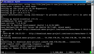 Now that Java’s installed, it’s time to download and compile Mono. Run wget http://download.mono-project.com/sources/mono/mono-2.10.8.tar.gz to download the mono source to your home directory.